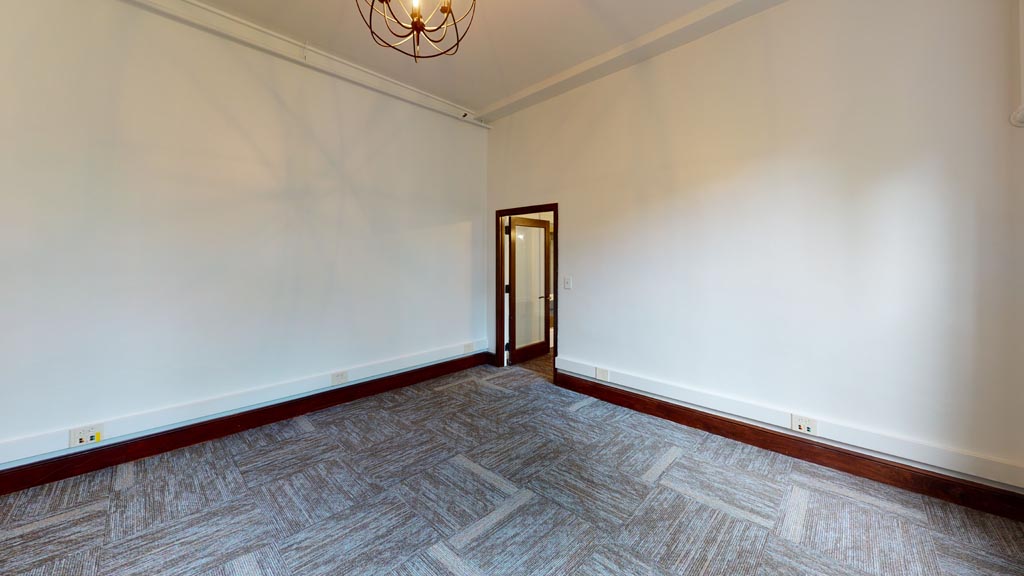 Office 209 is a mid-sized corner office space overlooking the side parking area. The office is located near the top of the main staircase and down the hall from the elevator. The second floor offers 3 conveniently located restrooms, shared kitchenette, and copy area.